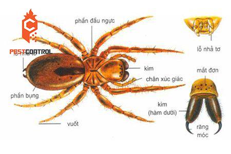 ✨Tất cả nhện trên thế giới đều có 8 chân, bốn cặp chân hai bên phần đầu ngực di chuyển và chăng lưới.